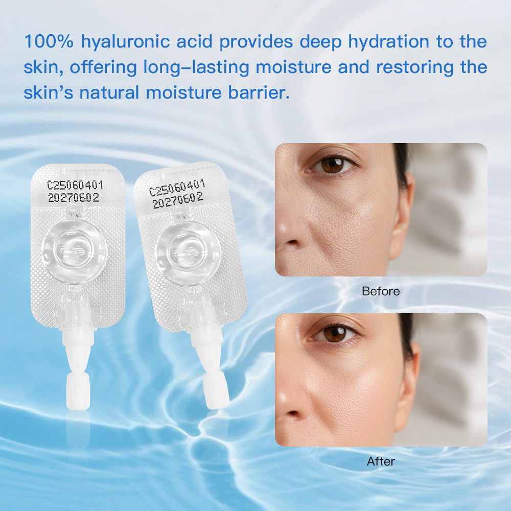 100% hyaluronic acid provides deep hydration to the skin, offering long-lasting moisture and restoring the skin's natural moisture barrier.